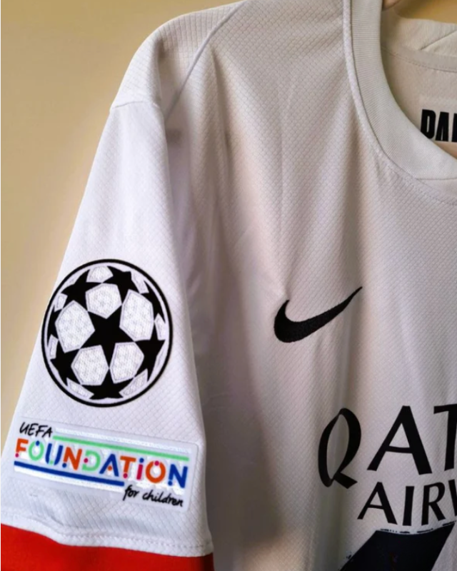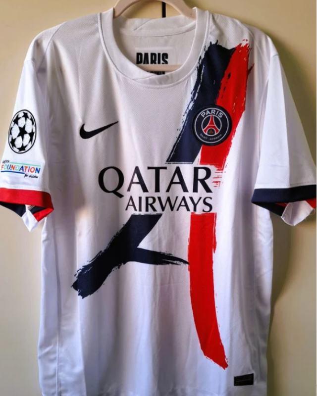 The Paris Saint-Germain 2024–25 jersey worn with number 2 by ACHRAF HAKIMI pays tribute to the rich history of the Parisian club. Adorned with the Champions League patch, it honors the Eiffel Tower while being elevated by the personalization of the phenomenal Moroccan player, adding an extra touch of prestige.