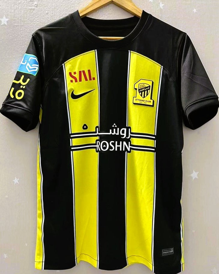 A new frontier of football is represented in this Al Ittihad 2023-24 jersey with the number 9 of KARIM BENZEMA. A uniform that represents the future of a new football, with the personalization of the French star sanctioning and legitimizing the birth of new football horizons