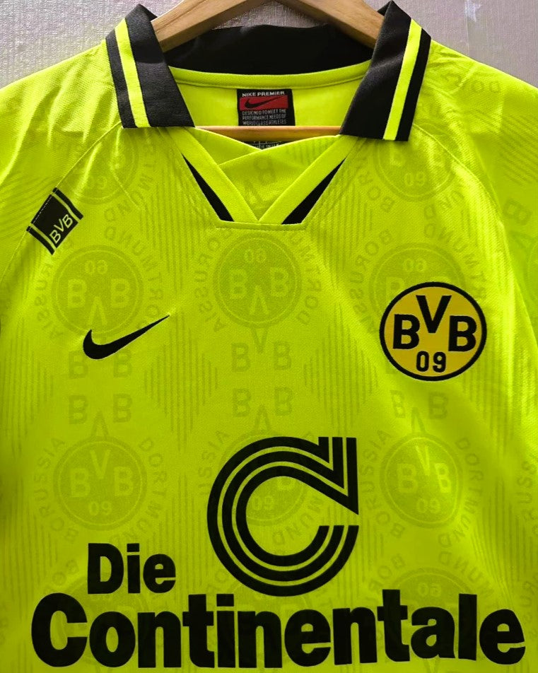 One of the most iconic teams ever takes us back to the 1996-97 season with the Borussia Dortmund jersey and STEPHAN CHAPUISAT's number 9. A much-loved masterpiece of design, with the Swiss striker's personalization making this uniform a true gem