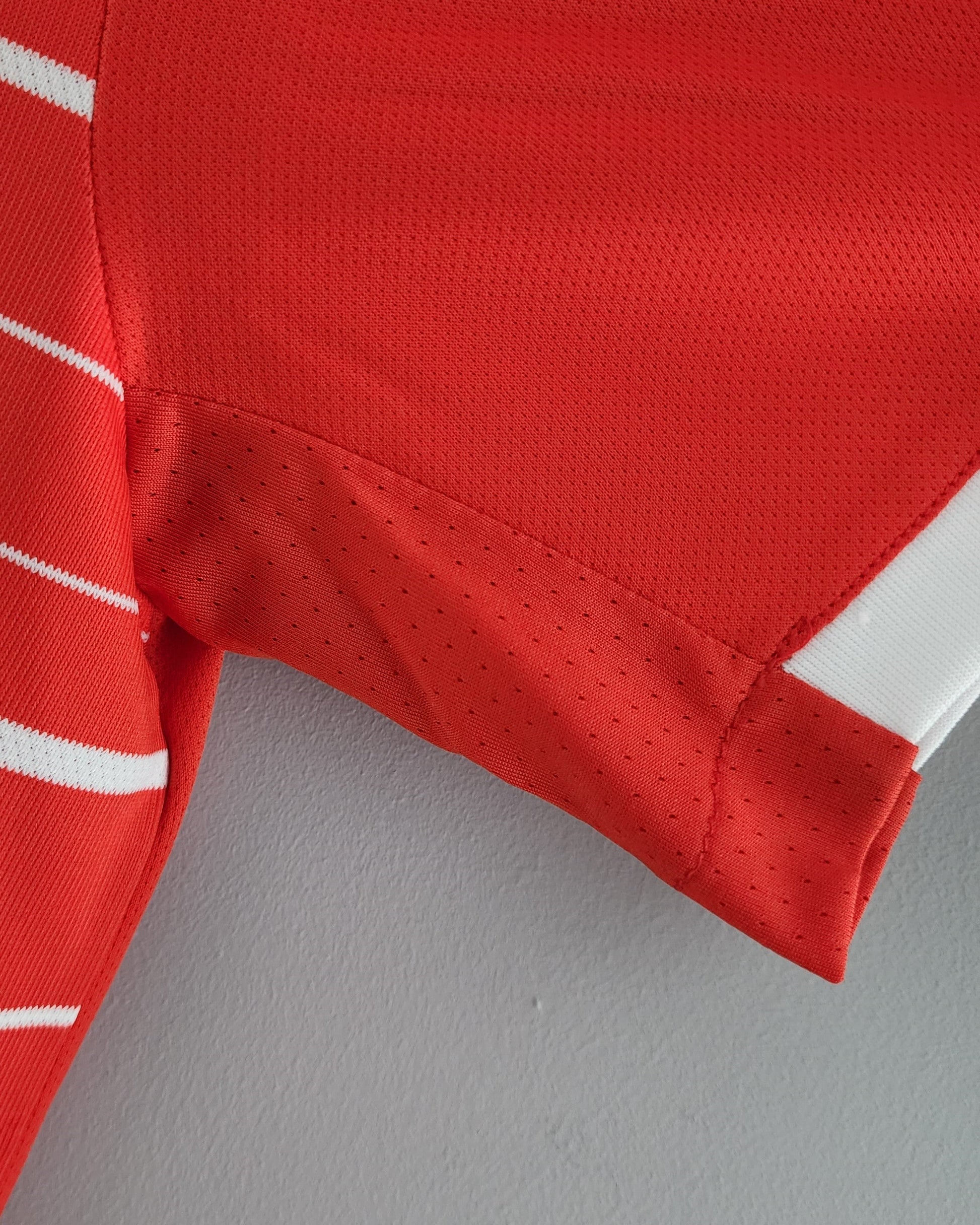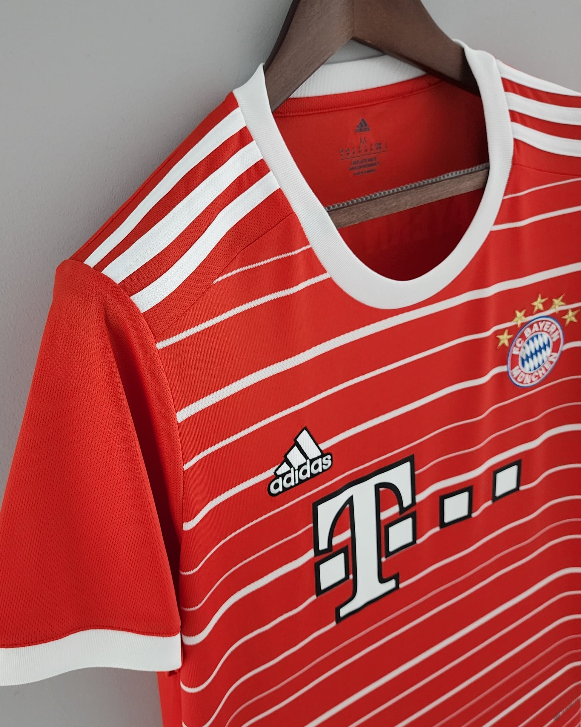 Relive Bayern Munich history with the 2022-23 season shirt featuring the number 4 of MATTHIJS DE LIGT. A design masterpiece created by Adidas, with the flamboyant red color embraced by white inserts highlighting the strength and tenacity of the Bavarian club and its strong Dutch centre-back at the highest level