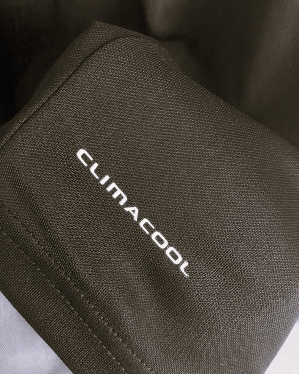 The materials used are 100% polyester, which wicks away sweat and moisture.