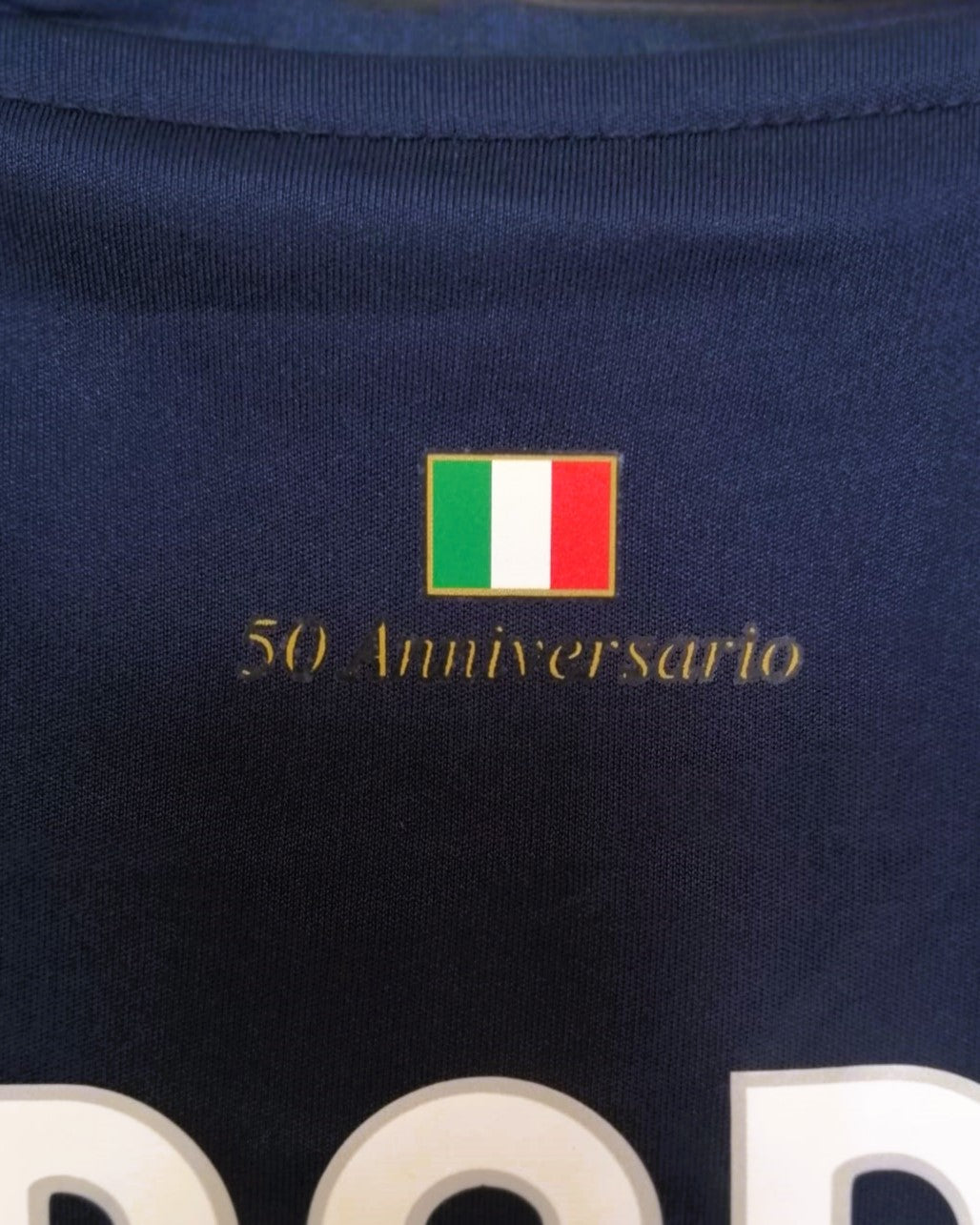 A historic shirt, this one from Lazio made in the 2023-24 season with CIRO IMMOBILE's number 17. Behind the collar, the inscription in memory of the 50th anniversary of the first Scudetto can be seen, while the Serie A patch further highlights the personalization of the Azzurri bomber