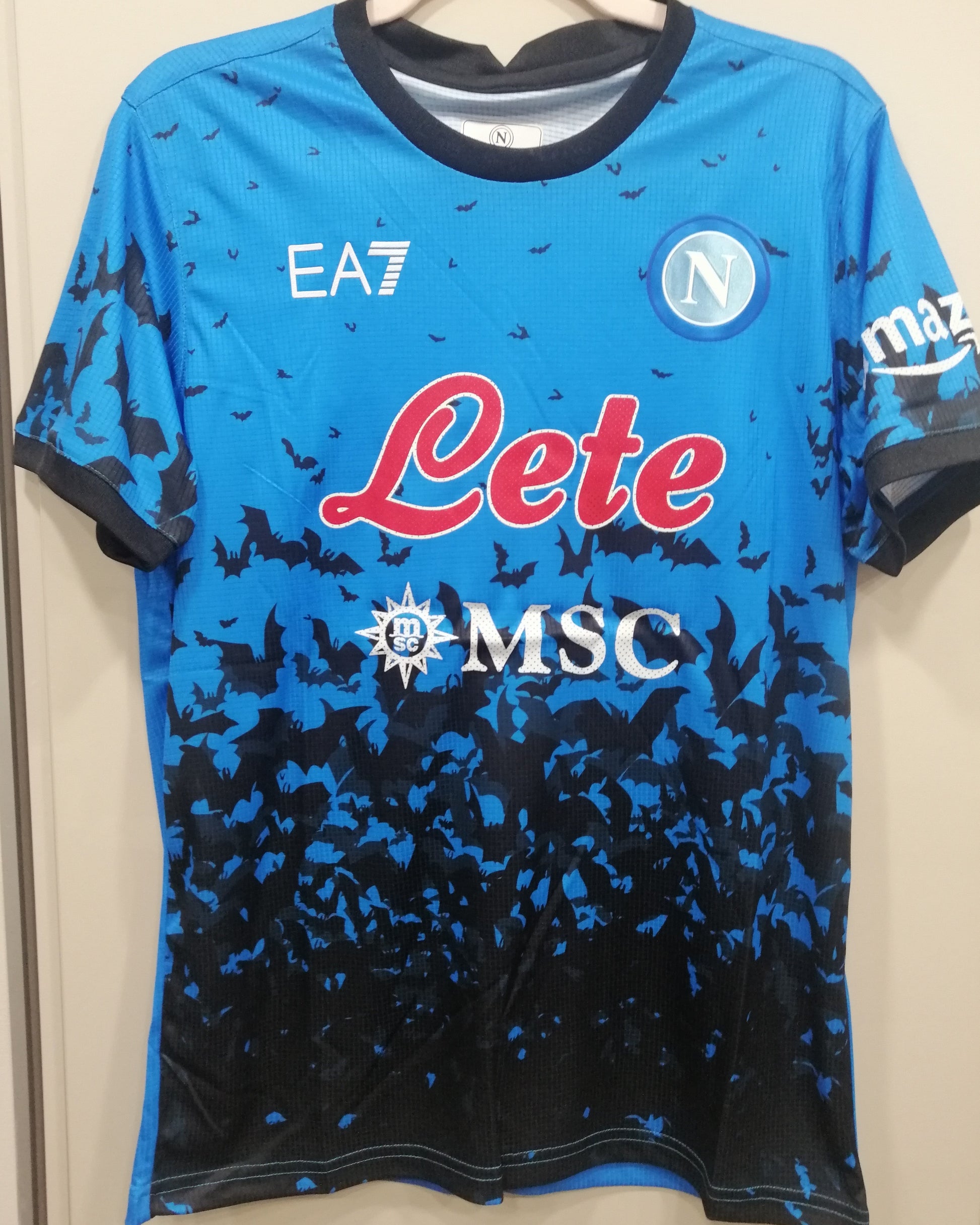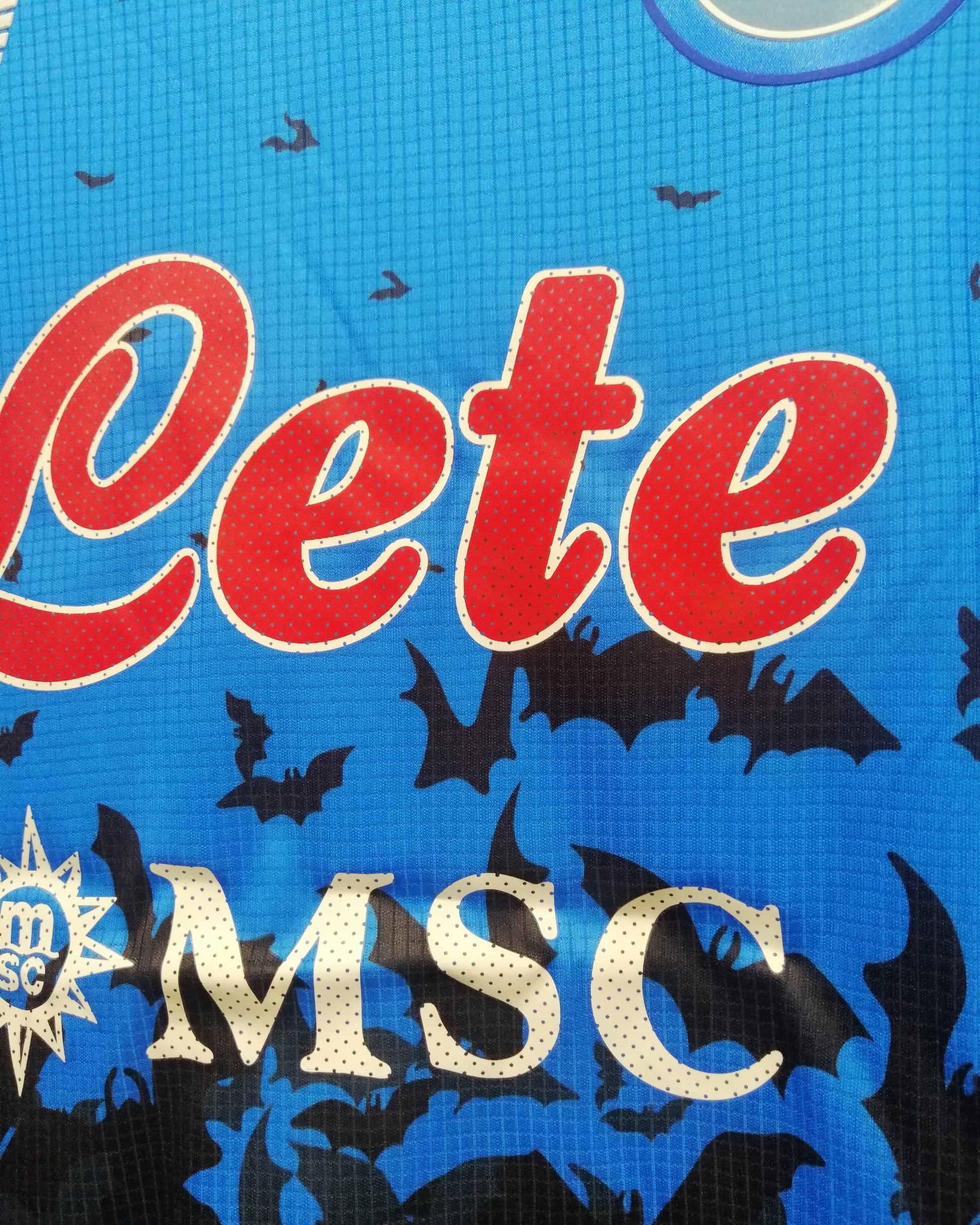 Welcome to the Napoli jersey worn by KHVICHA KVARATSKHELIA in the 2022-23 season with the number 77. Made with a design that pays homage to Halloween, it represents an authentic piece of sporting history as it witnesses the triumph in the Italian championship after 3 decades, with the talented Georgian player leader and idol of the Neapolitan fans