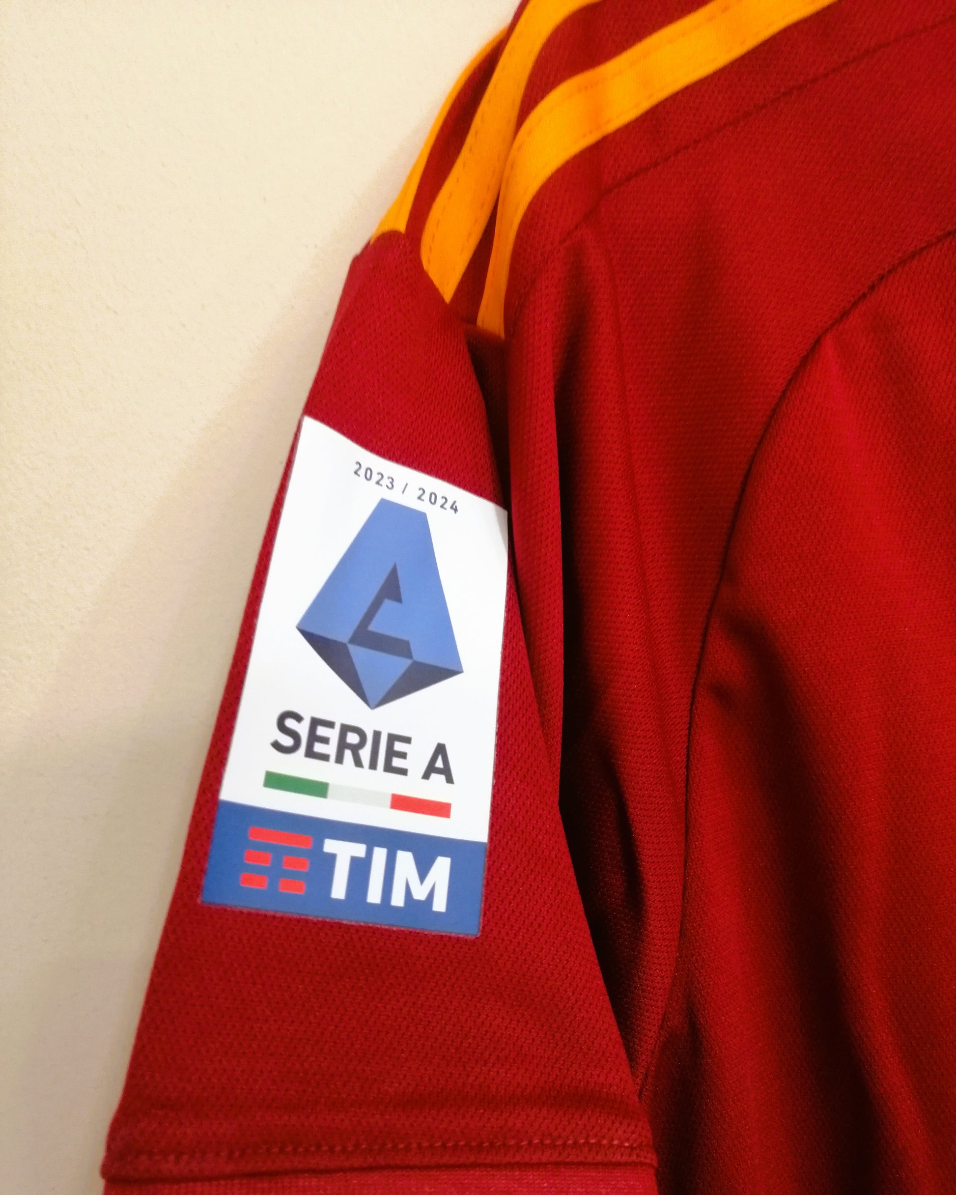 In the heart of the eternal city, amidst the lure of historic monuments and the overwhelming energy of the Roma fans, the Roma shirt for the 2023-24 season emerges with ROMELU LUKAKU's 90. This authentic masterpiece created by Adidas and enriched by the Serie A patch, is a hymn to the elegance and power that characterizes the Belgian striker, absolute dominator of the opponent's penalty area.
