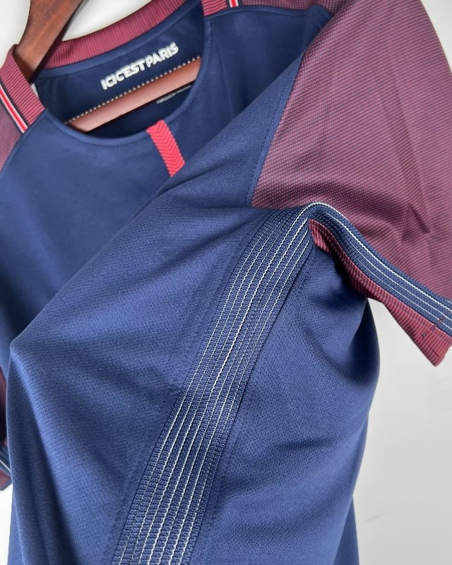 The Paris Saint-Germain jersey for the 2017-18 season worn with number 10 by NEYMAR Jr, represents a new chapter in the Brazilian star's career. In blue and burgundy with refined white inserts, it is made with the usual skill by Nike, highlighting the class of "O'Ney" combined with the charm of Paris in a very successful union of intent