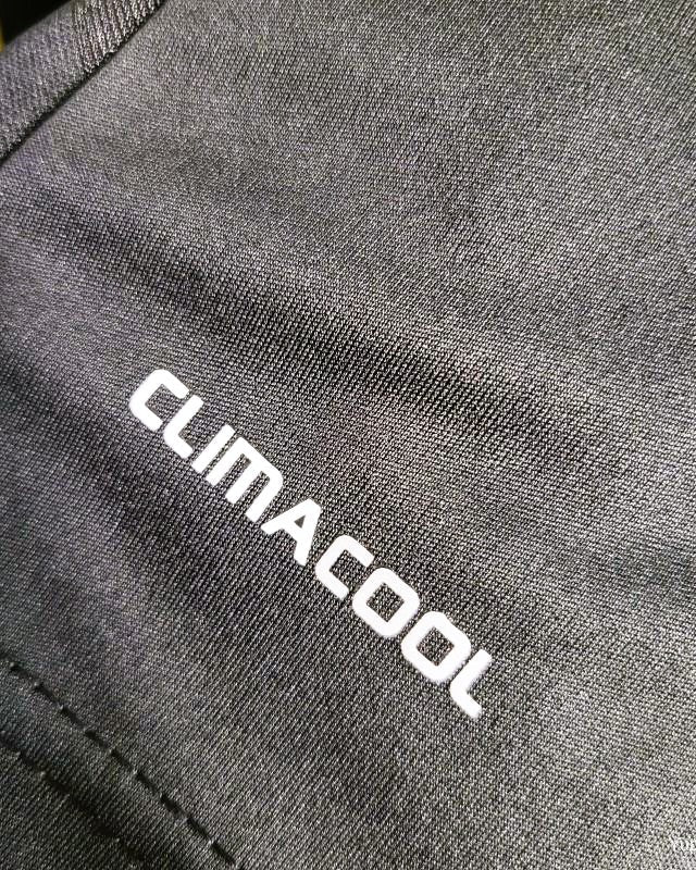 The materials used are 100% polyester, which wicks away sweat and moisture.