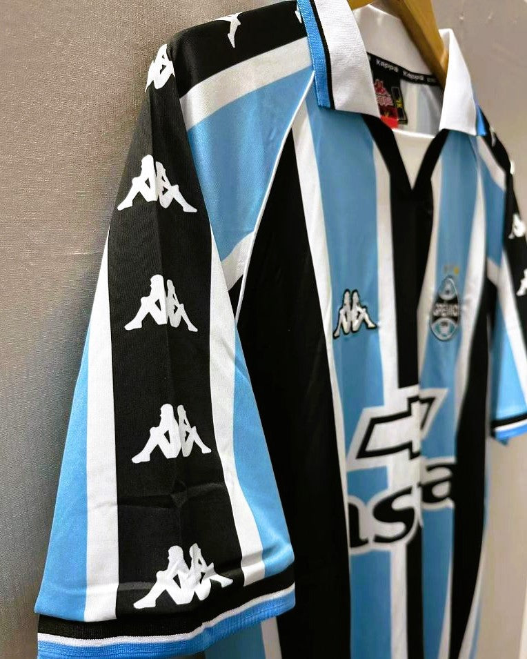 The Gremio shirt for the 2000-01 season, worn with number 10 by a very young RONALDINHO, is an authentic masterpiece of design that embodies the essence of crystalline talent. Masterfully crafted, it represents the beginning of a luminous career of an absolute star who would make millions of fans around the world fall in love with him