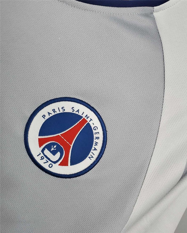 The Paris Saint-Germain shirt for the 2001-02 season, worn with the number 21 by RONALDINHO, is an authentic masterpiece of design that embodies the essence of Parisian elegance. Created by Nike with refined shades of grey, it is a combination of sobriety and innovation with the Brazilian star as the perfect testimonial