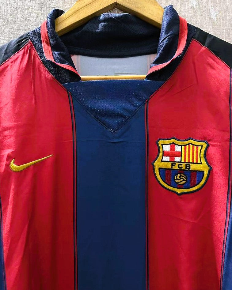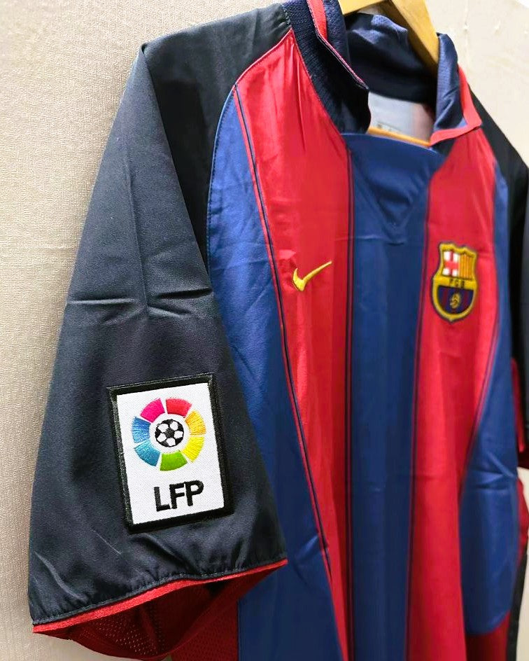 Welcome to the beating heart of football with the Barcelona 2003-04 jersey, a Nike creation featuring RONALDINHO's number 10. This masterpiece, enriched with the La Liga patch, captures the charming smile and extraordinary talent of the Brazilian tightrope walker, beloved idol of the Blaugrana fans