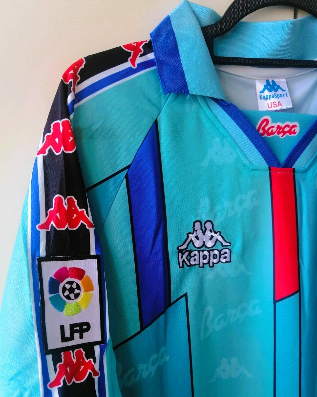 Make football history with the 1996-97 Barcelona shirt featuring RONALDO's number 9. Enriched by the La Liga patch, it is further enhanced by the personalization of the young phenomenon and future world football star