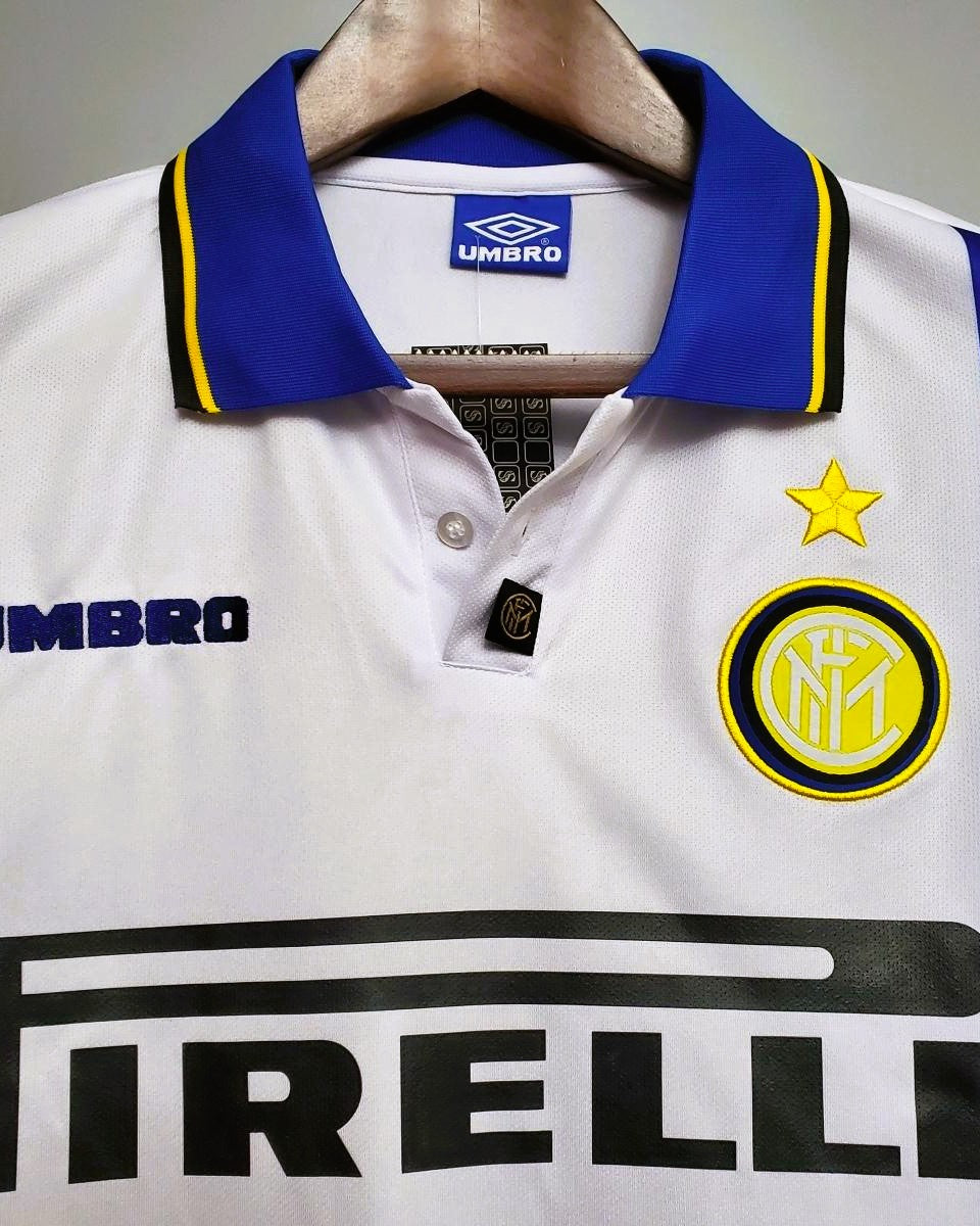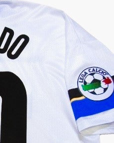 Welcome to Inter history with the 1997-98 jersey worn with the number 10 by RONALDO. This masterpiece produced by Umbro and enriched with the Serie A patch, is a tribute to the unparalleled class of the Brazilian 'Fenomeno' and his incredible talent that has enchanted fans all over the world, elevating him to the status of a world football legend