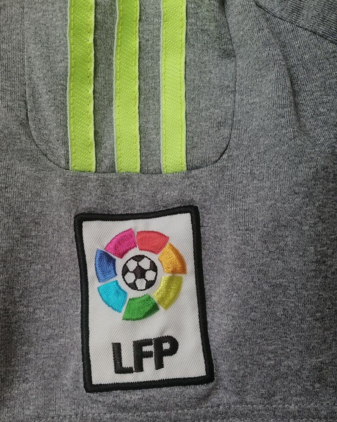 The Real Madrid shirt for the 2015-16 season, worn with the number 7 by CRISTIANO RONALDO, is made by Adidas in an eye-catching color combination. Gray and yellow with the La Liga patch, it is enlivened by a white name and number that create a bold and eye-catching color contrast, further highlighting the greatness of the phenomenal CR7