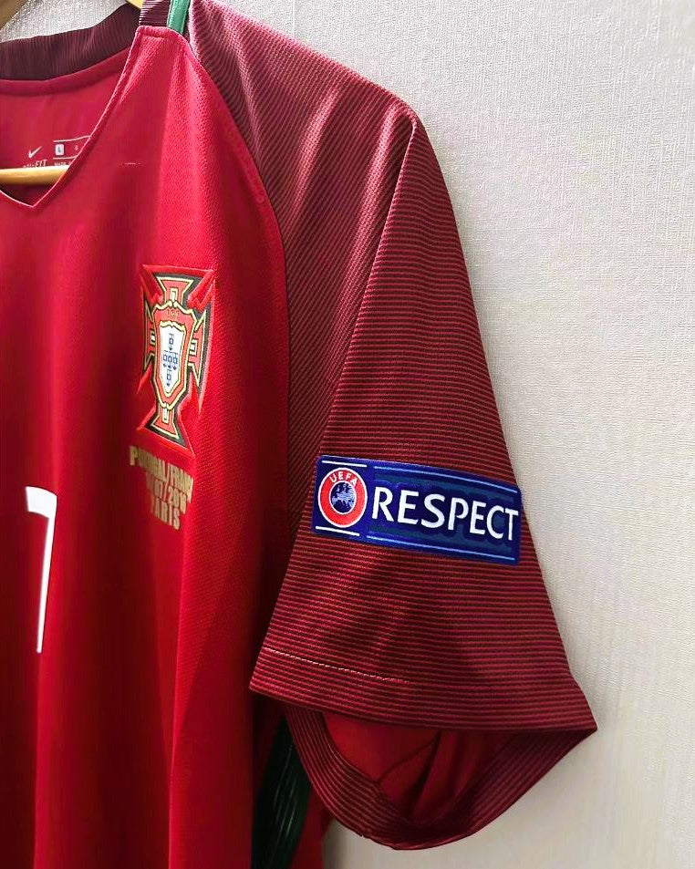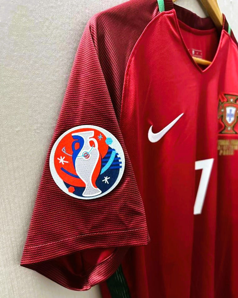 Relive the history and glory of Portugal with the 2016-2017 jersey worn with the number 7 by CRISTIANO RONALDO. This authentic masterpiece celebrates the Portuguese triumph, with the Euro 2016 patches and the inscription on the chest, representing the highest point in the history of the Lusitanian national team, European Champions dragged by their phenomenal leader and captain