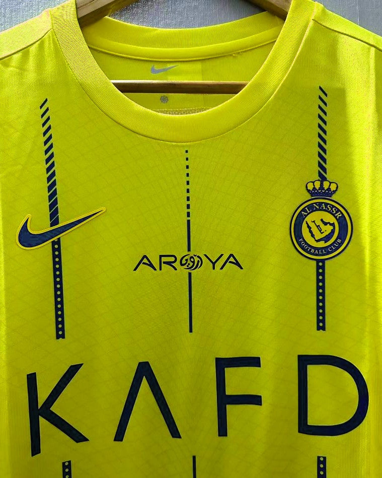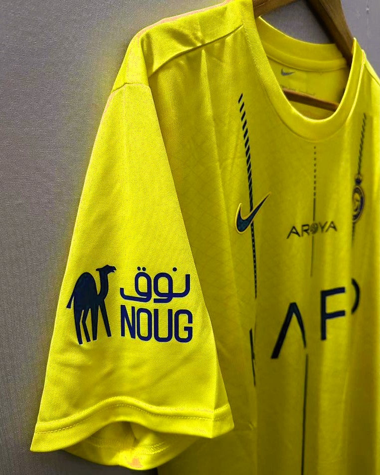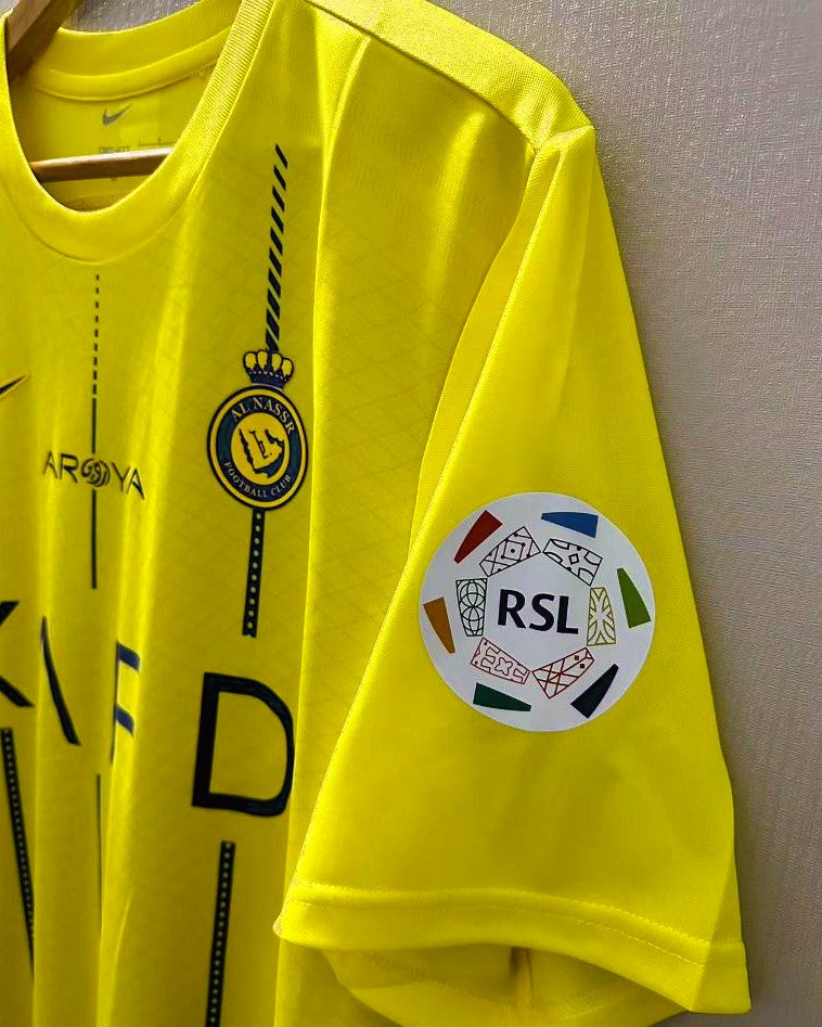 A new frontier of football is represented in this Al Nassr 2023-24 jersey with the number 7 of CRISTIANO RONALDO. A uniform enriched by the Saudi League patch that represents the future of a new football, with the personalization of the Portuguese star player sanctioning and legitimizing the birth of new footballing horizons