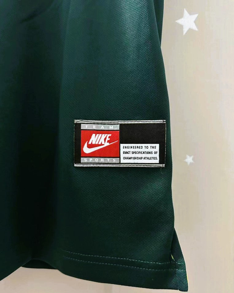 The Brazil jersey with the number 1 by CLAUDIO TAFFAREL, is a piece of football art from the 1998-99 season. Made by Nike, it celebrates and pays homage to one of the greatest goalkeepers in Brazilian history