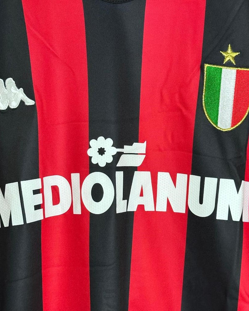 Relive the golden era of Italian football with the AC Milan shirt from the 1988-89 season worn with the number 9 by MARCO VAN BASTEN. This authentic piece of sporting history bears the Scudetto on its chest, testimony to the Rossoneri's domination of the Italian championship, led by the phenomenal Dutch striker