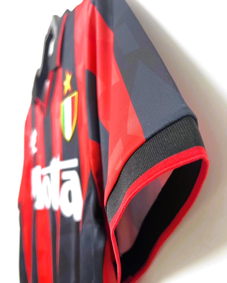 Relive the golden era of Italian football with the AC Milan shirt from the 1993-94 season worn with the number 9 by MARCO VAN BASTEN. This authentic piece of sporting history has the scudetto on its chest, testimony to the Rossoneri's domination of the Italian championship, led by the phenomenal Dutch striker