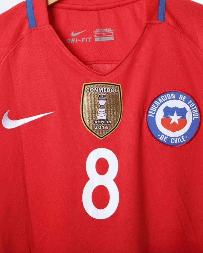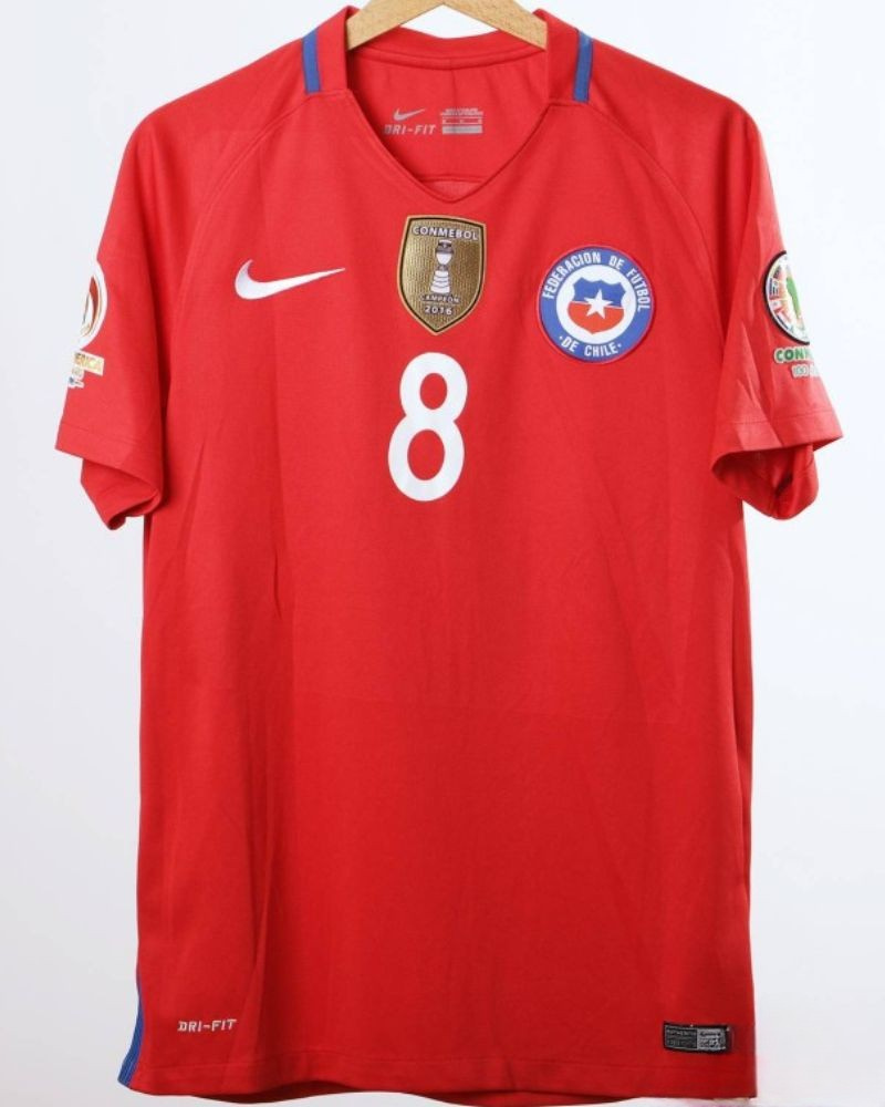 ARTURO VIDAL's number 8 Chile jersey from the 2016-17 season celebrates an absolute sporting triumph. Enriched with Copa patches - Urban Football Week