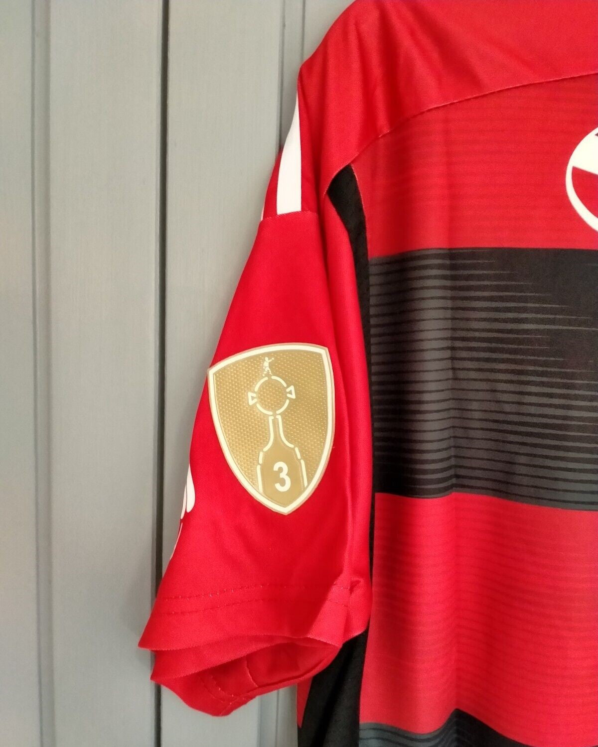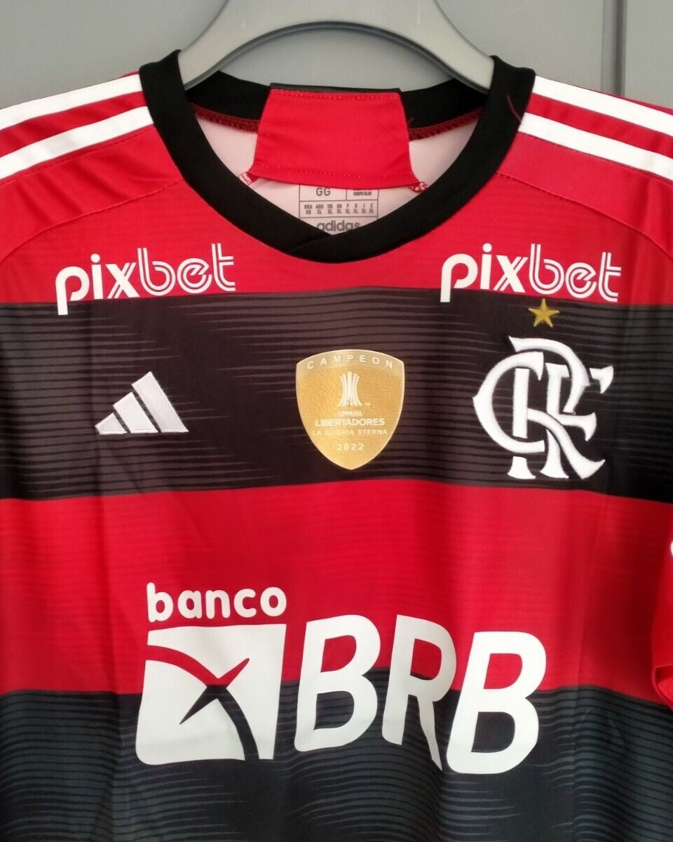 One of the most beautiful uniforms in the world for one of South America's most iconic players: a perfect marriage for this Flamengo jersey created by Adidas in 2023-24 with the number 32 of ARTURO VIDAL. An authentic red-and-black jewel, embellished with the Libertadores patches, testifying to the dominance of the Brazilian club led by the phenomenal and legendary Chilean midfielder
