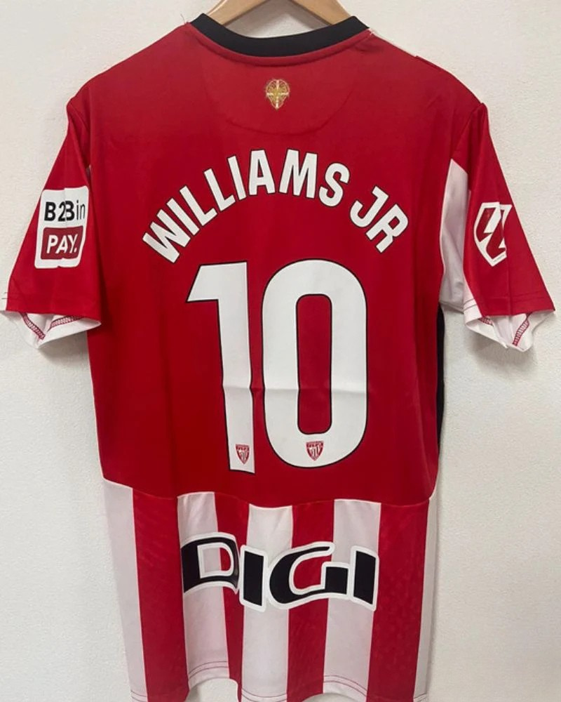 Athletic Bilbao's 2024-25 season jersey with the number 10 by NICO WILLIAMS, celebrates and highlights the club's values and tradition. Enriched with the La Liga patch, it enhances the personalization of the phenomenal young Spanish player